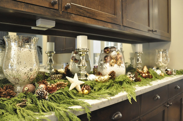 This year, our holiday decor is full of metallic colors and lots of greenery. I left a lot of decor in the bins I organized last year, but may create a few more little vignettes here and there over the weekend. My attention has been on gift buying this week (almost done!) and now cooking and baking, but I'm really enjoying the holiday decor in our home.